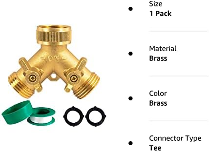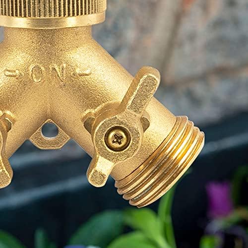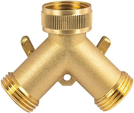 Hourleey Brass Garden Hose Splitter (2 Way), Solid Brass Hose Y Splitter 2 Valves with 2 Extra Rubber Washers (Brass)