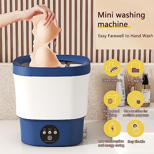 Household Small Washing Machine, Mini Washing Machine, Portable Washing Machine for Underwear, Towels, Socks, Lightweight Clothing, 9L Mini Washer, Easy to Use