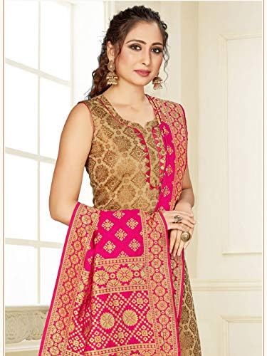 Indian Pakistani Women’s Readymade Salwar Kameez Banarasi Art Silk Woven Suit with SIlk Dupatta Stitched Dress….