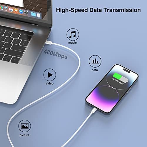2 Pack iPhone 14 Pro Max charger cord are of high quality, pull-resistance, fast charging and 480Mbps high transmission speed certification, ensures complete charge and sync compatibility with your iPhone/iPad devices.