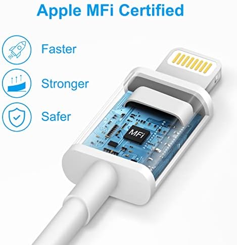 The perfect combination of 20W USB-C wall charger and 6ft USB-C to charger cable allows you to get phone charging done in less time, 3x faster than regular charging. The built-in protection device can intelligently adjust the input power of the mobile phone and automatically match the current required by the device. The Apple MFi certification ensures 100% flawless compatibility with Apple devices