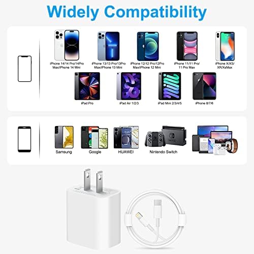 【Widely Compatibility】iPhone 20W USB-C power adapter offers fast charging for iPhone 14/14 Pro/14 Pro Max/13/13 Pro/13 Pro Max/12/12 Mini/12 Pro/12 Pro Max/SE/11/11 Pro/11 Pro Max/XS/XS Max/XR/X/8/8 Plus/iPad. Also provides regular speed charging for other devices.