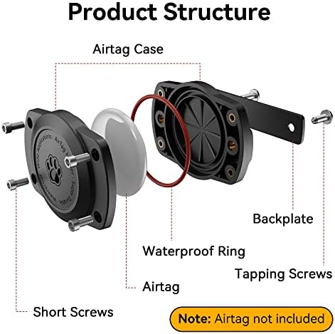 【Long Term Durability and Waterproof】Solid and Resistance, even in water. There is a waterproof ring that keeps out moisture, dust, etc. Keep Airtags clean and dry. This holder has four screws that hold the tag side in place and two that go through the collar and hold the whole thing in place. (Squeeze the corners with your fingers as you tighten each screw until it just bottoms out, and of course don’t overtighten.) Once in place, it is a very strong waterproof play proff for air tag.