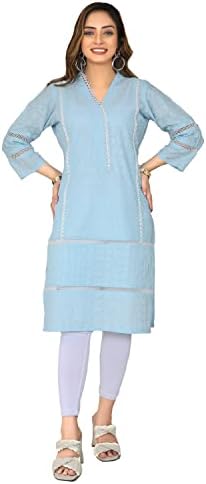 Versatile and Stylish: These Kurtis can be paired with jeans, leggings, or traditional Indian pants, making them suitable for festivals, casual, office, and travel occasions. They come in various colors and sizes, from Medium to Plus size 3XL. Color = Shirt – Celeste Blue