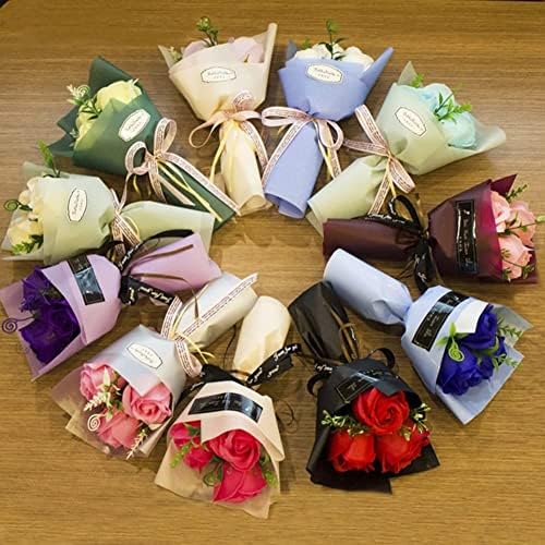 JJLFresheners 3 Heads Artificial Rose Bouquet Soap Flower Petals Valentine Day Gifts for Women, Best Friend & Girlfriend, Birthday, Christmas Valentine’s Day from Daughter Son Husband, Red