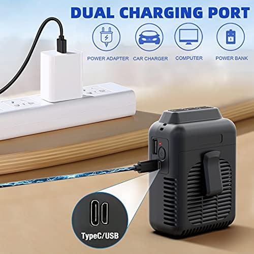 【Strong in Wind】: Even though the fan is small, working power is not small, this mini waist fan has 3 levels of adjustment, the max speed can be reached 5200RPM while maintaining at a fairly low noise level (less than 55dB), and give you the coolest experience in outdoor working time.