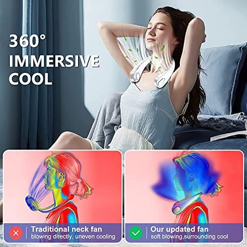 ❄️Personal Fans 360° Cool Safely: Be fully chilled from neck to face with kids bladeless fan’s widened 4 wind channels, wrap-around 20 outlets, 360°airflow coverage. Immersive cool from upgarded wind turbine to simulate natural wind, soft and even, chill every inch of skin. Leafless neck fan never pinch hair, with cordless design, an ultimate safe headphone fan for all ages to beat heat waves.