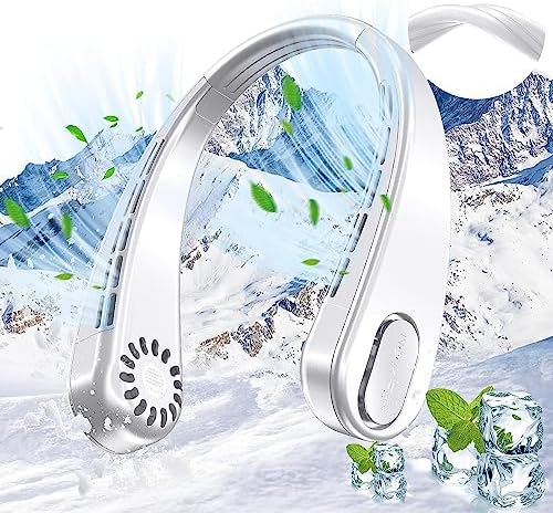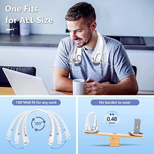 ❄️Adjustable Neck Fans Stay Put As Move: From hiking to biking, hanging neck fan, never slip off your neck with C-shaped design, made of premium ABS and soft skin-friendly silicone flexes up to 180°, accomadate all neck sizes. 0.75 lb mini cooling fan, lighter to wear without strain, a coolest gift for friend, colleague and family.