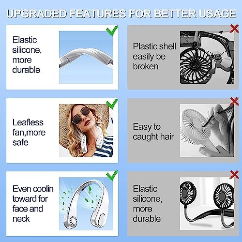 ✔ Anti-Slip & Durable: Soft silicone increase friction to prevent slipping as moving, bending and working. High performance neck fan cooler, not easy to break.