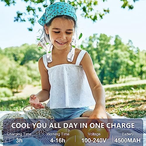 ❄️USB 3H Charge | 16H COOL: Wearable Portable fan, easy to charge via phone charger, laptop, convenient to use anytime everywhere. 3H fast recharge for 4-16H long running, say goodbye to quick consumption. The rechargeable USB fan is an good assistant for outdoor work, gym, chores and commuting. NOTE: USE 5V-2A.