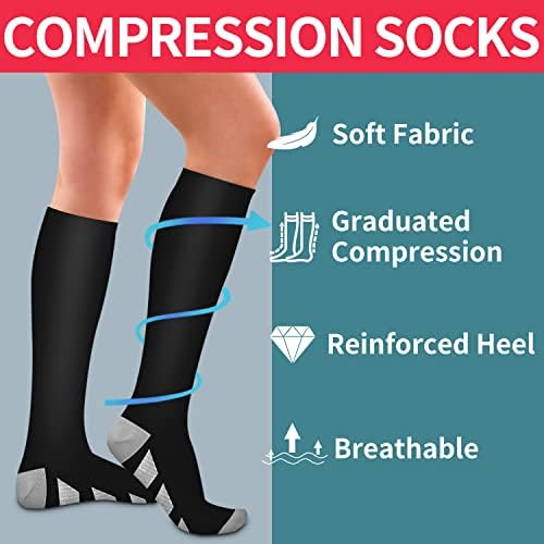 4 PAIRS OF UNISEX -Our compression socks are made up of high-quality Lycra fiber.The design is ergonomic to give ultimate comfort.You can best describe them in two words:flexible and durable. Affordable prices without sacrificing comfort, quality, and fashion.High performance material and temperature control,keeping your muscles cool during workouts and warm during rest.You can expect them to alleviate any mild leg pain and swelling that hinders a productive -free day.