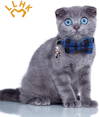 LLHK 4 Pack Small Fish Cat Collars with Bow Tie and Bell,Personalized Breakaway Kitten Collar for Girl boy Cats,Adjustable 7-12inch,Cute for Kitty Kitten Adult Cats,Pet Supplies,Stuff,Accessories