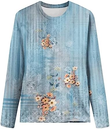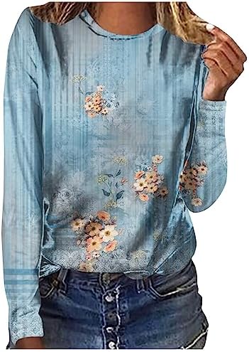 Fall Casual T-Shirt Shirts for Women Trendy Loose Fit Tees Womans Winter Blouses Pullover