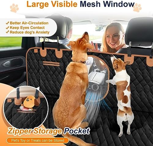 🐾【FITS FOR MOST VEHICLE】: Our dog hammock for car is a bigger size 54″ W x 58″ L, suitable for most limousines, family cars, SUVs, or trucks. Note – Please refer to the chart to measure your back seat size when purchasing.