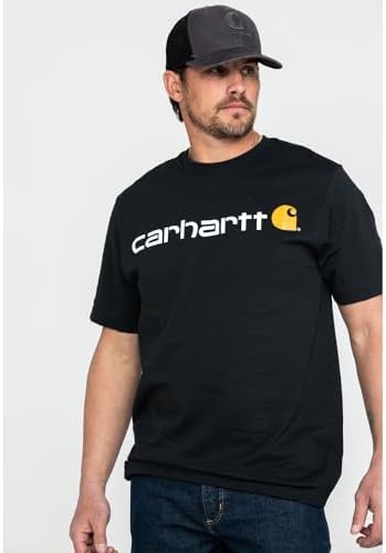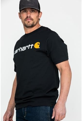 Carhartt’s short-sleeve logo t-shirt is designed for work. Made of 6.75-ounce, 100% cotton jersey knit, it features a rib-knit crewneck, side-seamed construction to minimize twisting and a tagless neck label. The Carhartt logo is printed on the chest and back. Heather Gray fiber content is 90% cotton/10% polyester. 6.75-ounce, 100% cotton jersey knit, midweight Side-seamed construction to minimize twisting Carhartt logo on front and back