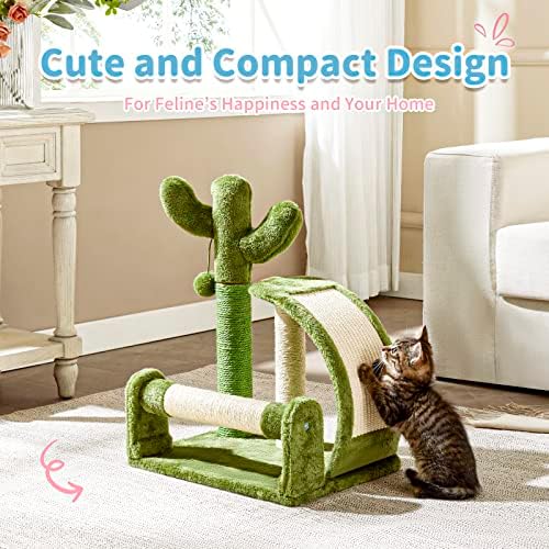Made4Pets Cat Scratching Post, Cactus Scratcher Tree for Indoor Small Cats, Adult Kitten Scratch Pad with Natural Sisal Ropes, Cute Kitty Nail File Vertical Scratcher with Green Carpet Cover