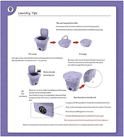 💦[Material of mini clothes washer machine]: Our portable washer use ABS material. For low noise and long-lasting operation, this quiet washing machine is resistant to corrosion, aging, yellowing, and high temperatures.