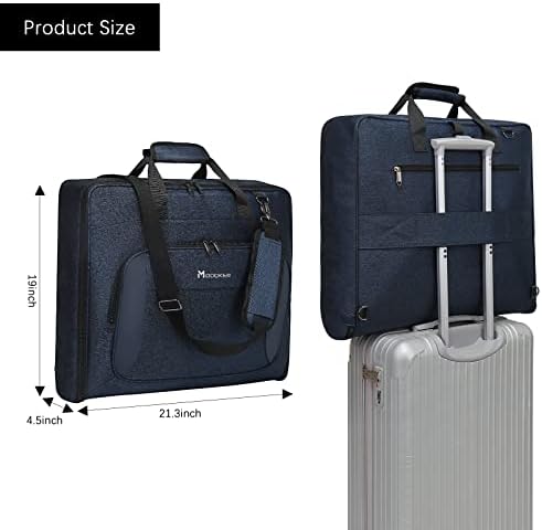 WATER-RESISTANT GARMENT BAG: Designing with Modoker custom logo zipper, Features Water-resistant & Fray-resistant Nylon with leather on the front makes this garment bag looks stylish that makes sure the luggage lasting longer. Garment suitcase has a handle to carry with your hand, Plus a detachable shoulder strap is made with padded to make this garment bag fits your shoulder well