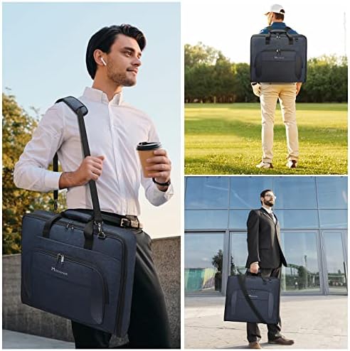 LARGE STORAGE CAPACITY & ORGANIZED COMPARTMENT: Convenient pockets for easy access. Suit garment bag is designed with multiple zipper pockets to Maximize efficiency when packing; 4 Interior pockets for shoes, ties, socks, and other small accessories, etc. 2 Exterior pockets; One front pocket is well organized & One back pocket is Large designed for electronics or travel documents, passport, pens, and some other small item, etc