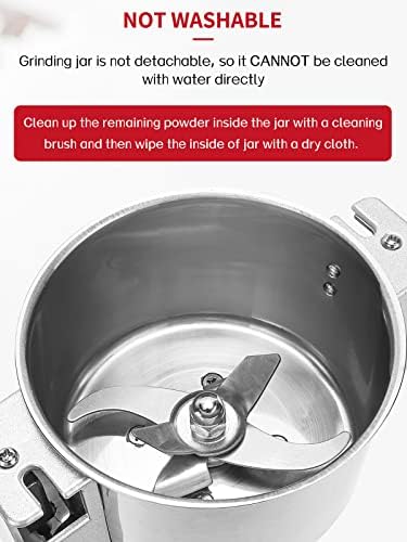 EASY TO USE & CLEAN – This home grinder is easy to control by a 0-5 min Timer Switch. Turn the timer switch to the grinding time you want and the grinder will start grinding automatically, and you can turn it back to zero to stop the operation immediately. Easily clean the inside jar with a cleaning brush and then wipe it with a dry cloth. (The grinding jar is not detachable, so Don’t wash it with water directly or rinse the motor base.)