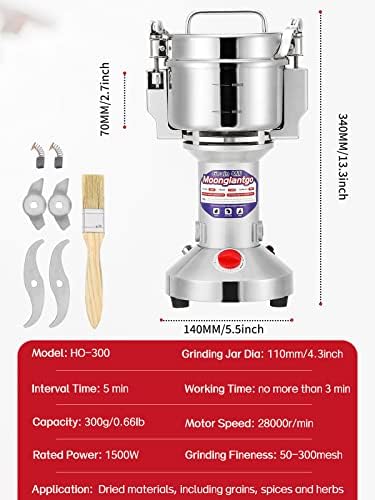 Moongiantgo Grain Mill Grinder Electric 300g Commercial Spice Grinder 1500W Stainless Steel Pulverizer Dry Grinder Grinding Machine (300g Upright, 110V)