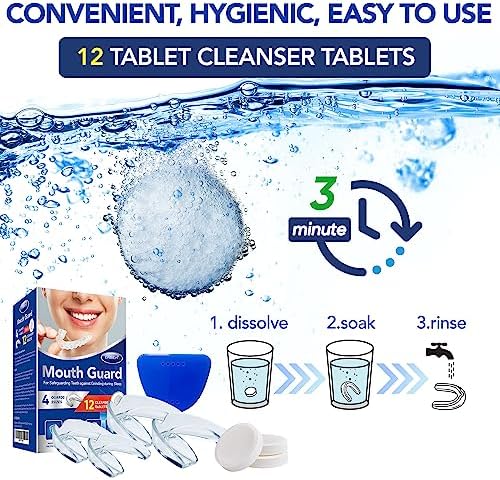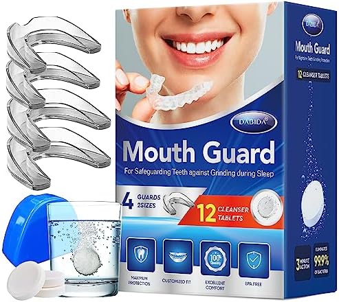 Convenient & Hygienic Cleaning Tablets : DABIDA Mouth guard for grinding teeth at night come with 12 cleaning tablets. You can easily clean your night mouth guards for teeth clenching with the cleaning tablets after using it. The process is very simple, and you can clean the teeth grinding mouth guard and store it in a very hygienic way. Experience the convenience with our mouth guard for clenching teeth at night today!