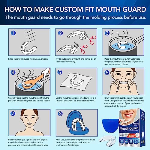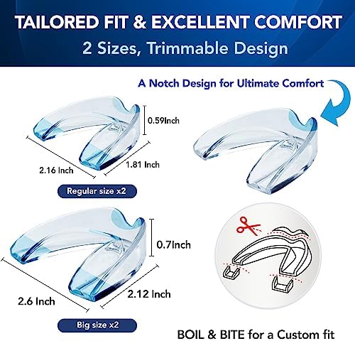Tailored Fit, Moldable Mouth Guard : DABIDA Mouth Guard for clenching teeth at night is designed to fit mouths of all sizes. This package consists of four mouth guards, featuring two different sizes with superior quality and design. Our teeth grinding mouth guard for sleep is made of a moldable material, which needs to go through the molding process before use, and you can trim this sleep mouth guard as you need. This allows you to create the most optimal and customized night guard for teeth.