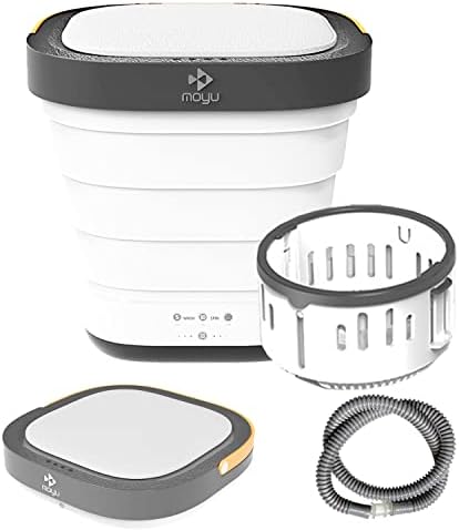 MOYU Mini Portable Bucket Washer Foldable Washing Machine with Spin Dry and Drainage Pipe (White US Plug 110 v)