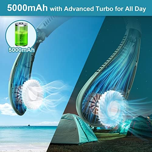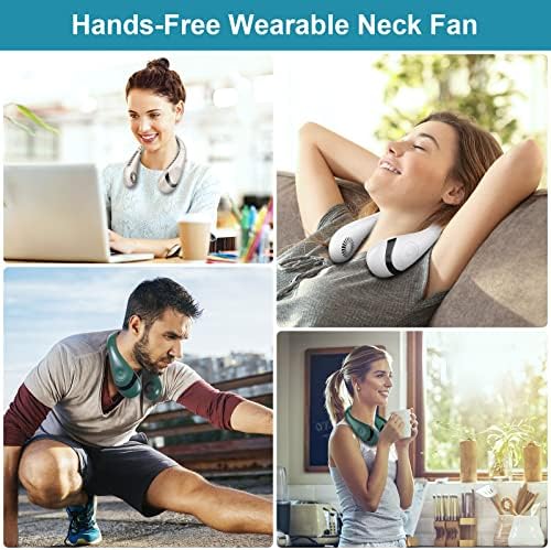 Adjustable Angle, Foldable Storage: All-round 360° cooling, flexible angle adjustment brings you a more comfortable feeling and frees your hands.Multi-vent design: 80 surrounding air outlets for all-round air; Squeeze the air duct, squeeze the air duct to increase the wind speed; 60 double-turboThickened fan blades: all-inclusive fan blades, safe and non-curling, non-stick, Wingless Design: You don’t have to worry abouthair getting caught by the fan blades. Safe to use.5000mAh=18hours long battery life: can work for up to 3-18 hours, easily meet the needs of a day’s use. Quick charge for 3-4 hours.Adjustable 3 airflow: Breeze, refreshing, strong, suitable for different occasions and different people. Save energy and enhance the experience.In a sloped wind guide structure: the wind is milder. High-quality ABS material, comfortable to wear. The fan can freely adjusted, suitable for users of various group, and is <36dB.Great Gift for Friend