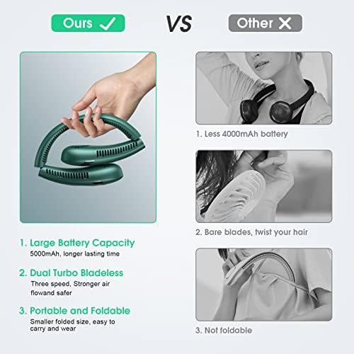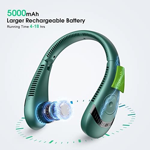 πββ 4-18HRS RUNNING – The neck fan has 5000mAh large Capacity Battery and lasts 4-18 hours working duration (depending on different speeds). Fast Charging 3-4 hours, easily meeting the needs of a day.