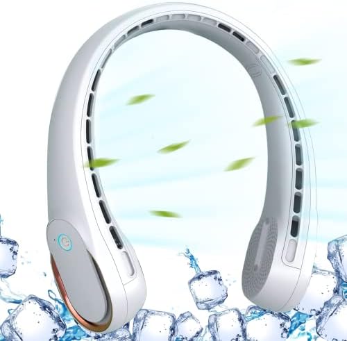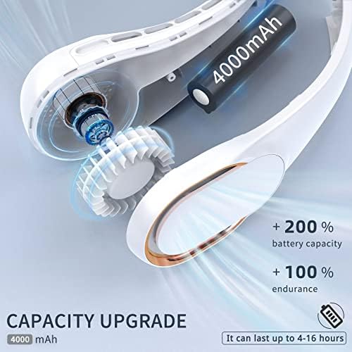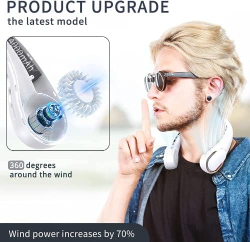 Neck Fan, Portable Fan around Neck, 4000 mAh Battery Operated Wearable Personal Fan with USB Rechargeable, 3 Wind Speed, Fast Cooling, Ultra Quiet, Bladeless, Headphone Design for Travel, Men Women