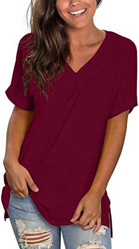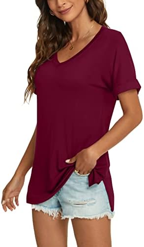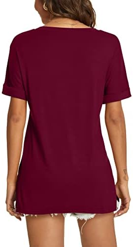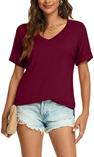 Features: This T-shirt has a trendy V-neck design with rolled sleeves and a loose side split design. The lightweight and breathable fabric is soft to the touch, making it comfortable to wear. This casual T-shirt can be paired with jeans, shorts, leggings, sandals, flip flops, sneakers. It’s a must-have top in your wardrobe