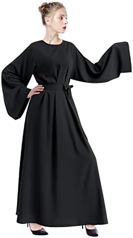 ✿ Women pullover round neck flare bell sleeves womens solid muslim one piece dress, 5 available sizes S, M, L, XL, 2XL to select, simple classic look, make it fashion forever. Islamic maxi dress for women chiffon kaftan abaya dress muslim long sleeves. Middle east saudi arab kaftan islamic abaya dress dubai robes muslim hijab abaya kaftan dress for women, modest muslim dresses for women solid muslim one piece dress, muslim dress for women elegant long sleeve robe, long sleeve flowy maxi dress .