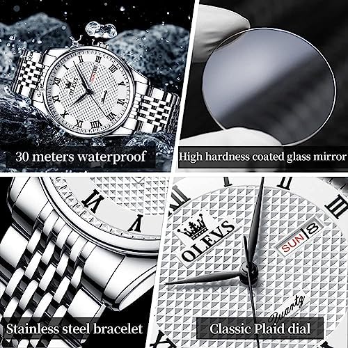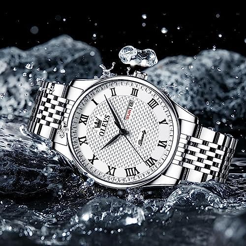 OLEVS Mens Diamond Watch Luxury Business Dress Wrist Watches Quartz Stainless Steel Waterproof Luminous Day Date