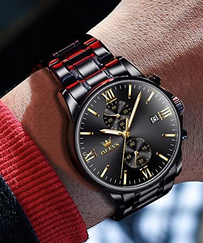 [Black Dress Watches for Men]⌚OLEVS has continued to push the limits of timekeeping toughness while creating new and original designs.This mens stainless steel black watch embody these efforts in an attractively thin configuration.High-strength stainless steel material,makes it possible to create a case that is a mere 11mm thin for outstanding strength and crack resistance.