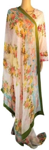 2. Design Printed Extra Large Chiffon Dupatta Scarf – Beautifully Decorated with Lined Fabric and Gota Lace