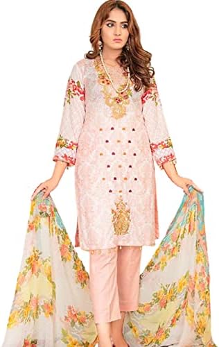 1. Printed and Embroidered Premium Cotton/Lawn Shirt Kameez – with Gota Lace Lining on Daaman and Sleeves, Embroidered Neck