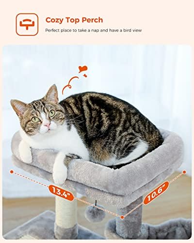 Nice-Designed and Sturdy: Well-designed cat tower can efficiently improve the interaction. The removable top perch can be better fit to your cats. Also, each layer is connected tightly so that your kitten can climb up and down easily. Besides, an anti-toppling strap helps the cat tower more sturdy,the raised edge top perch can protect cats from falling off well.
