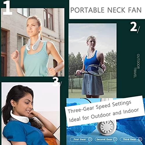 PORTABLE AND COMFORTABLE: Hands-free neck fans constructed with a soft, skin-friendly and flexible silicone material, you can easily adjust the bands as per your requirements and wear them comfortably. The stylish cooling fan was designed as a headphone that can free your hands anywhere. The portable and lightweight hanging neck fan can be applied to outdoor sports, indoor exercise, offices, gyms, travel, and camping.