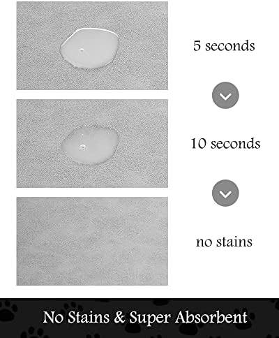 Durable & Absorbent: Perfect pet supplies.This pet food mat can stop water from overflowing. Super absorbent and quick-drying ability to avoid wetting pet paws even for messy drinkers. Sturdy dog & cat food bowl mat cannot be torn easily and avoid eating by mistake. Keep the pet’s eating environment tidy and clean.