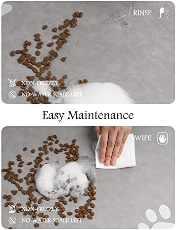 Anti-Leakage & Anti-Slip: The 100% non-slip rubber backing keeps the dog placemat in place no matter how your pet pushes on it. The waterproof rubber bottom stops water from penetrating the floor. Pet bowl mats for food and water will not cause the floor to be corroded and reduce the abrasion to the floor.