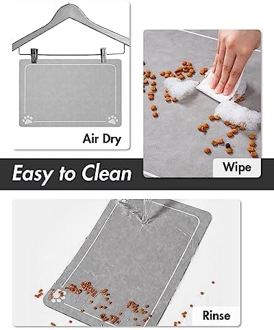 Anti-Leakage & Anti-Slip: 100% non-slip rubber backing keeps the dog placemat in place, even a messy eater. The waterproof rubber bottom stops water penetrating underneath or spreading out. Cat dog food mat can prevent floor from corrode and abrasion.