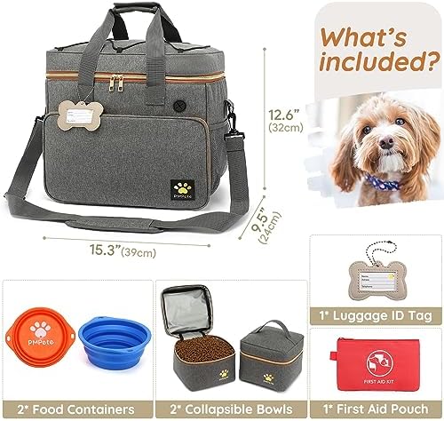 Pmpete Dog Travel Bag for Traveling| Week Away/Overnight Dog Travel Accessories with Multi-Function Pockets|Pet Travel Set for Dog and Cat|Ideal Dog Diaper Bag and Dog Travel Kit(Grey)