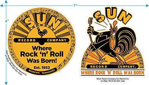 If you know Sun Records, you know where Rock ‘N’ Roll was born. Show your Sun Records pride in this vibrant yellow T shirt with the company’s logo across the chest. In addition, you’ll receive two exclusive die-cut stickers: one featuring a circular company logo and a second of the iconic singing rooster and Sun’s name. All of our products are officially licensed and 100% authentic.