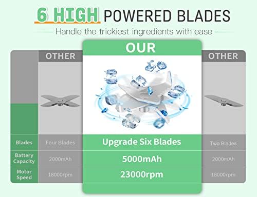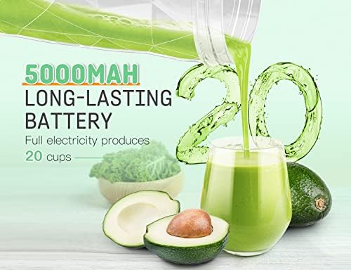 🍨【Portable USB Rechargeable Blender】Designed with a 5000mAh high-capacity battery for easy USB charging. The portable blender available in a 20 oz size with USB connectivity and lightweight design of just 1.5 pounds, blender fits perfectly in any bag, making it ideal for work, travel, and home use.
