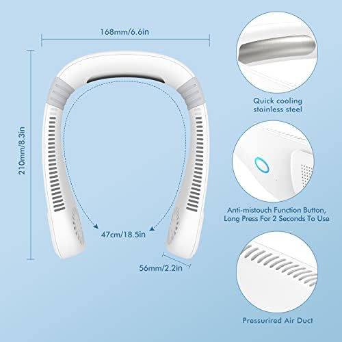 Powerful Cooling: 360Deg’ surround air supply, the pressurized tuyere increases the air volume by 30%. The 54 turbine blades and 46 annular pressurized wind outlets are safe and durable, which can be used around your face, enough airflow to always keep you cool.The Built-In stainless steel sheet can cool down quickly in 3 seconds exchanges heat energy with skin.