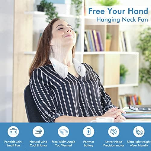 Summer artifact, cool summer. A portable neck fan fathers day gifts & travel essentials & 2022 graduation gifts is a must-have item this summer. Portable Neck Personal Fan for Sports, Outdoor, Indoor, Hands Free Neck Fan As a gift for father/mother/girlfriend/boyfriend/birthday/anniversary! Features: ✔ Wide range of applications:Use for both indoor and outdoor activities, office, subway, traveling, camping, picnic, hiking, exercising, cooking. ✔ Air volume level 3: strong wind > normal wind >natural wind. ✔ The neck fan has 46 ventilation holes that keep the face cool and can keep the makeup. It can be used safely by children and adults. ✔ Pressurized wind outlets, increases the air volume by 30%. ✔ Leafless design, you don’t have to worry about hair being caught by fan blades. ✔ Half-closed air inlet, dust and sweat proof. ✔ Pressurized wind outlets, increases the air volume by 30%. Specifications: Product name:Portable hanging leafless neck fan Product weight: 7.76 OZ Battery capacity:2000 mAh Voltage working range:3.0-5 (V) Wattage:5 Watt Running time: 2.2-6.5 hours Interface Type:USB-C Package Included: 1 * Portable Neck Fan 1 * USB cable 1 * User manual