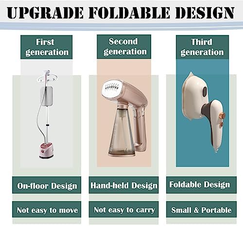 【2023 Upgrade 180° Rotation and Foldable Design】- Foldable body, easy to carry, small does not take up space, convenient storage, home or travel are very convenient. The handle can have three angled points, it can be rotated 0°-90°-180° to adjust the space for holding the handle, meet different ironing usage.