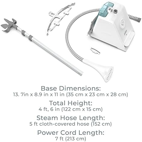 PORTABLE, PEDAL-POWERED STEAMING: There’s no need to hold a cumbersome steam button or manually pump the nozzle for steam output. Use the pedal at the base to easily turn the steamer on and off. The adjustable pole allows you to change the height, while the wheels on the bottom let you take this standing steamer with you anywhere.