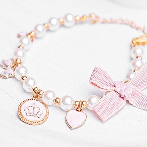 RayMinsino Fashion Pet Necklace Cat Pearl Crown Collar Accessories Ornaments Pet Cat Teddy Collar Pearl Jewelry Collar